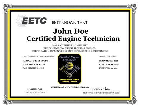 The Equipment & Engine Training Council (Eetc) Principles Of Small Engine Technology Certification Verifies.